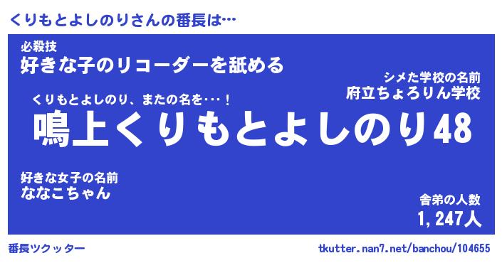 | 肩書あだ名 | 『くりもとよしのり御曹司』 |