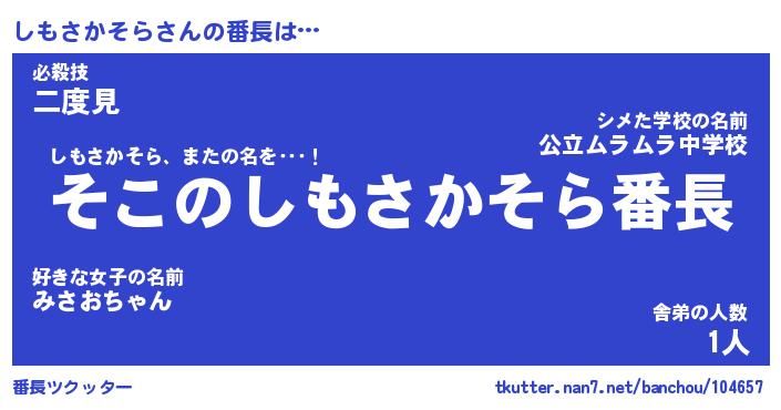 | ヒーロー風カッコイイあだ名 | 『スーパーシモサカソラ』『黄金騎士シモ』 |