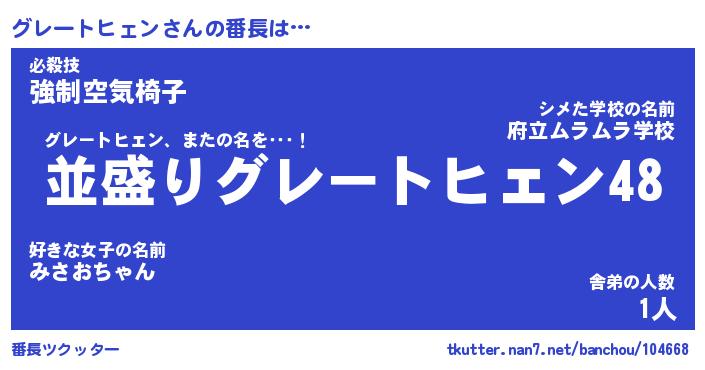| ヒーロー風カッコイイあだ名 | 『スーパーグレートヒェン』 |