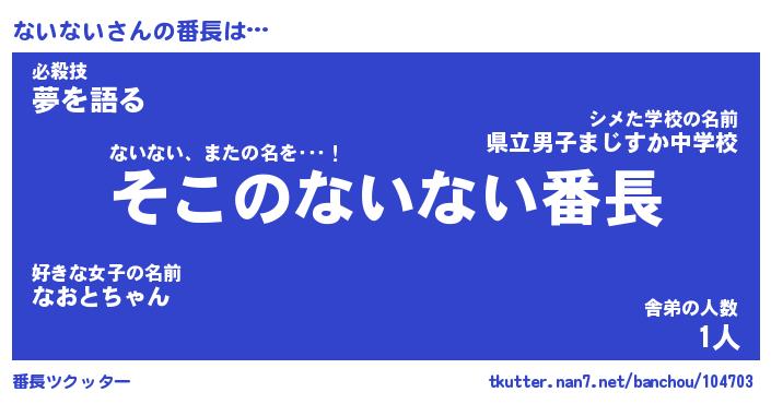 | ヘコむあだ名 | 『ないもー』『なまこ酢』『ない太郎』 |