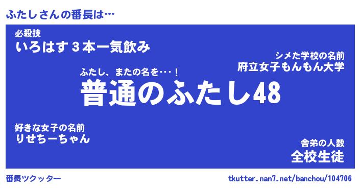 | 意味不明あだ名 | 『ペロリンふたし』『ふたしフォーエバー』 |