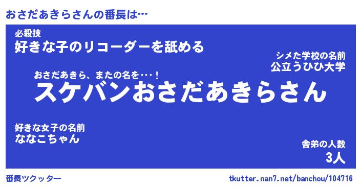 | 伝説のあだ名 | 『不死鳥の竜騎士おさだあきら』 |