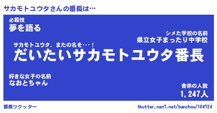 | 男性向けラノベタイトル風あだ名 | 『サカモトユウタの憂鬱』 |
