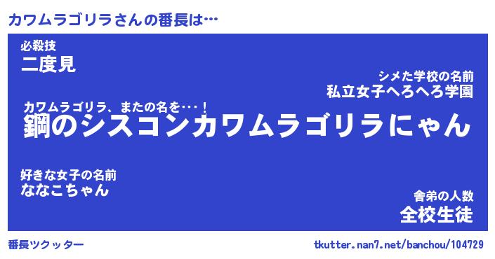 | 意味不明あだ名 | 『ペロリンカワムラゴリラ』 |