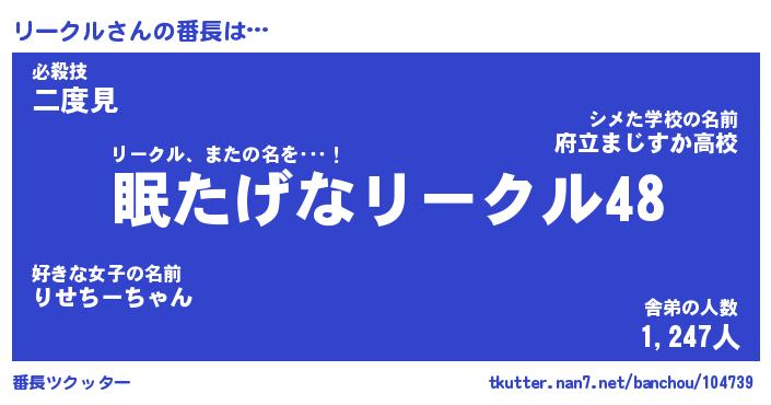 | 意味不明あだ名 | 『ペロリンリークル』『永久保存リークル』 |