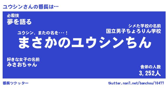 | 伝説のあだ名 | 『伝説のスナイパーユウシン』 |