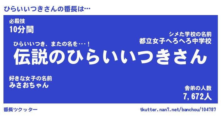 | ヒーロー風カッコイイあだ名 | 『スーパーヒライイツキ』『炎刃騎士ヒラ』 |