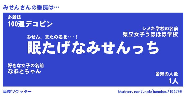 | 意味不明あだ名 | 『ペロリンみせん』『みせんフォーエバー』 |