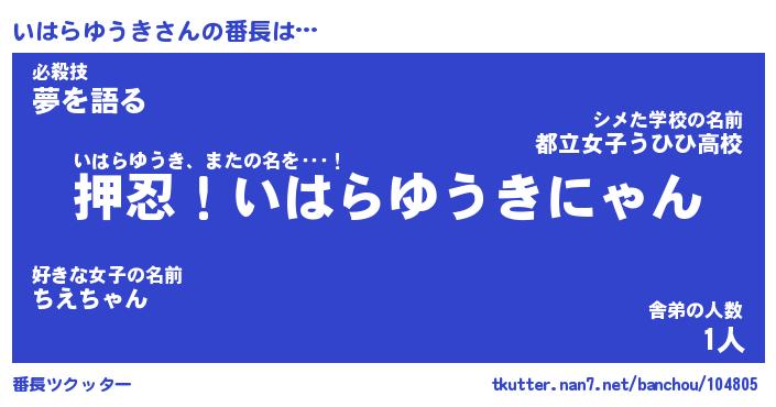 | ヒーロー風カッコイイあだ名 | 『スーパーイハラユウキ』『天弓騎士イハ』 |