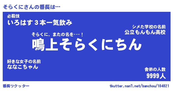 | 肩書あだ名 | 『そらくに店長』『そらくに総理大臣』 |