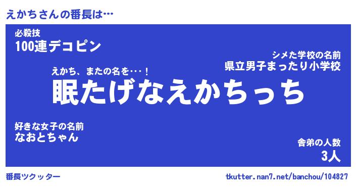 | ヒーロー風カッコイイあだ名 | 『スーパーエカチ』『ウルトラえかちマン』 |