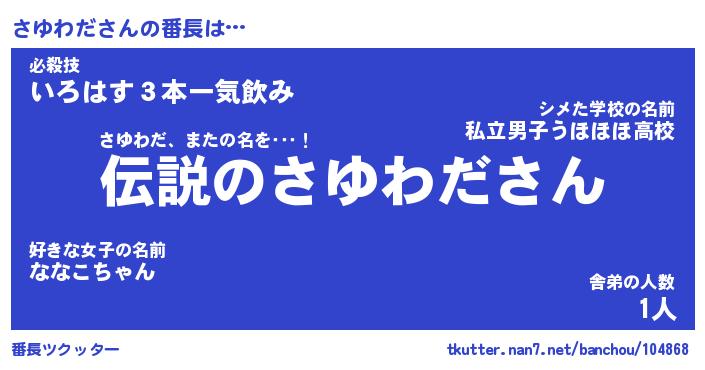 | 肩書あだ名 | 『さゆわだ御曹司』『さゆわだ大統領』 |