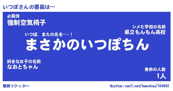 | 伝説のあだ名 | 『伝説のスナイパーいつぽ』 |