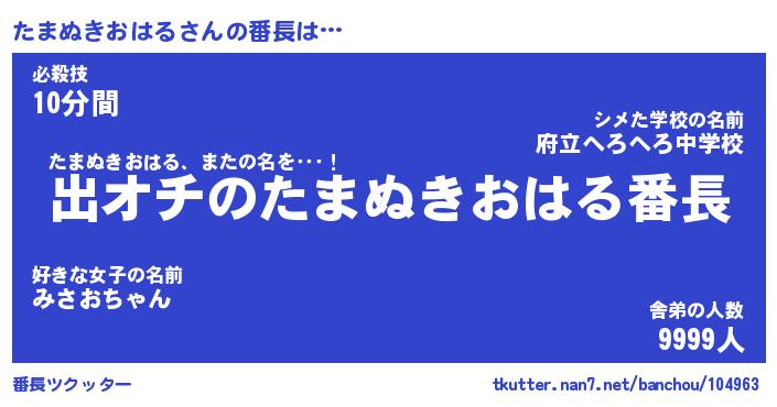 | 胡散臭い通販商品みたいなあだ名 | 『必ず成功するブレスレット…その名も「たまぬきおはる」』 |