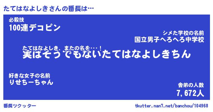 | 伝説のあだ名 | 『封印されしスナイパーたてはなよしき』 |