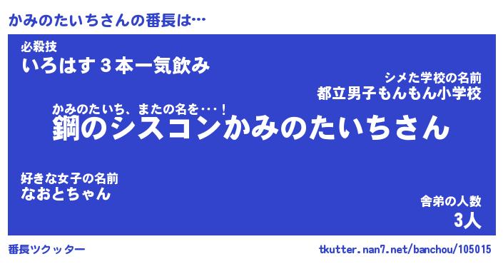 | ヒーロー風カッコイイあだ名 | 『スーパーカミノタイチ』『魔戒騎士カミ』 |