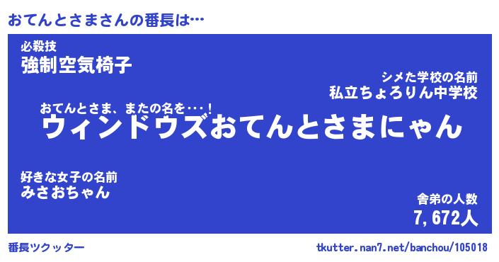 | 男性向けラノベタイトル風あだ名 | 『おてんとさまの憂鬱』 |