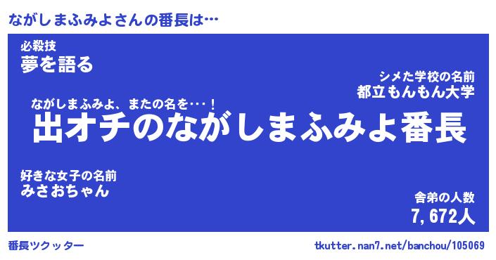 | 男性向けラノベタイトル風あだ名 | 『ながしまふみよの憂鬱』 |