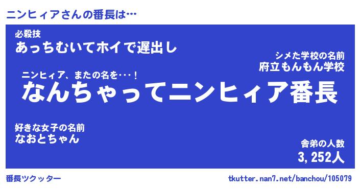 | ポケモン風あだ名 | 『ニンチュウ』『ニンヒダネ』 |