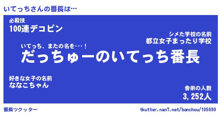 | ピコ太郎風あだ名 | 『イコ四郎』『ピイ二郎』『イテ八郎』 |