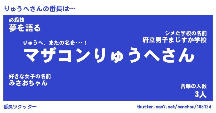 | 意味不明あだ名 | 『ペロリンりゅうへ』『永久保存りゅうへ』 |
