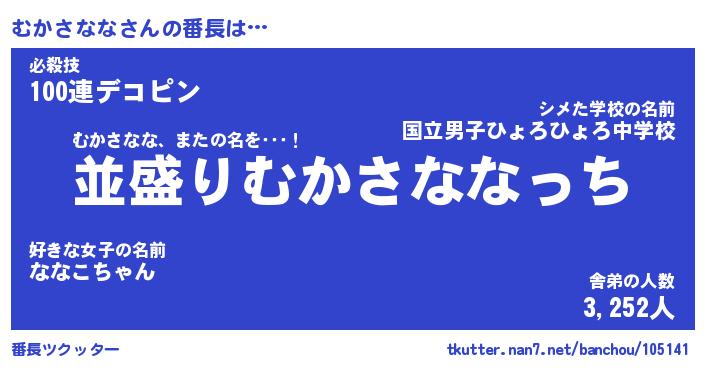| 肩書あだ名 | 『むかさなな社長』『むかさなな総理大臣』 |