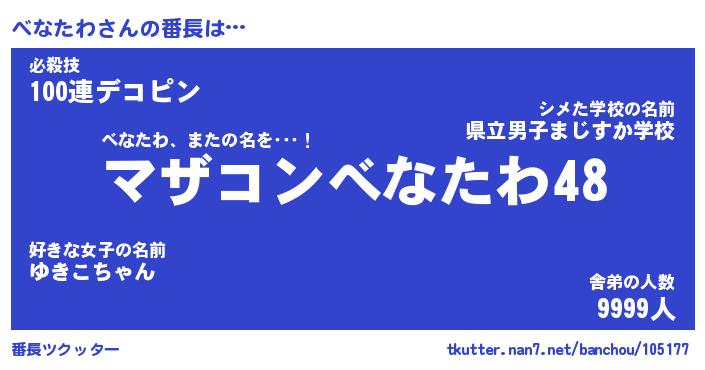 | 意味不明あだ名 | 『ペロリンべなたわ』『永久保存べなたわ』 |