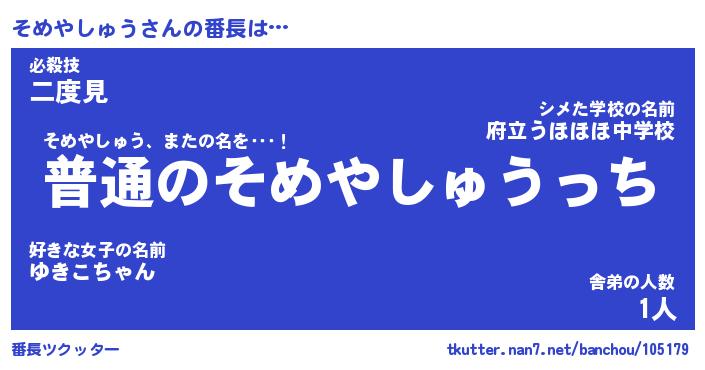 | 男性向けラノベタイトル風あだ名 | 『そめやしゅうの憂鬱』 |