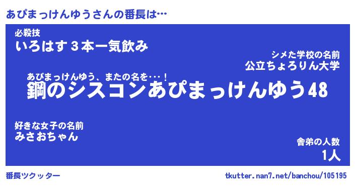 | 肩書あだ名 | 『あぴまっけんゆう御曹司』 |