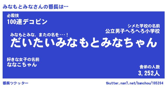| 2回繰り返すあだ名 | 『みなみな』『みみなな』『ぬめぬめ』 |