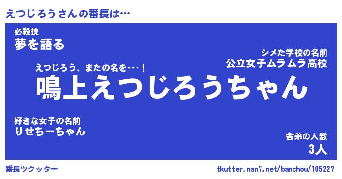 | 肩書あだ名 | 『えつじろう社長令嬢』『えつじろう班長』 |