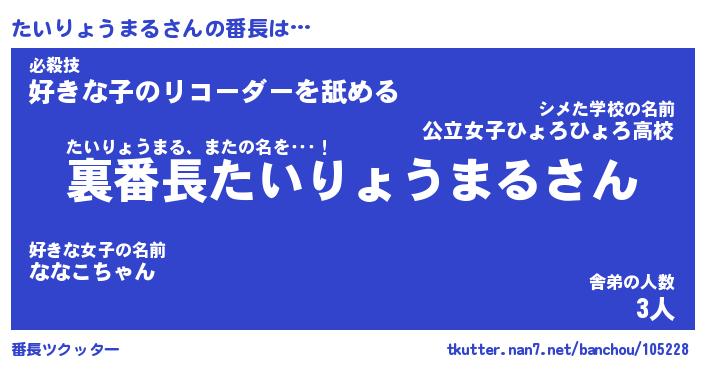 | ポケモン風あだ名 | 『タイチュウ』『タイリダネ』 |