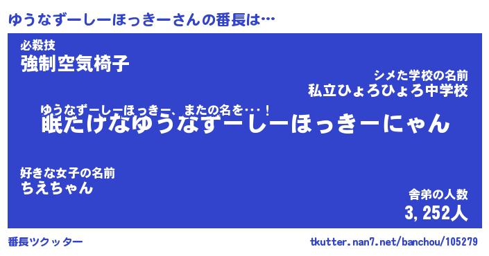 | 伝説のあだ名 | 『封印されし竜騎士ゆうなずーしーほっきー』 |