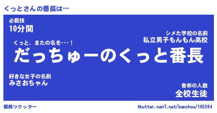 | 男性向けラノベタイトル風あだ名 | 『くっとの憂鬱』 |