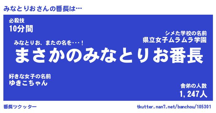 | 肩書あだ名 | 『みなとりおCEO』『みなとりお総理大臣』 |