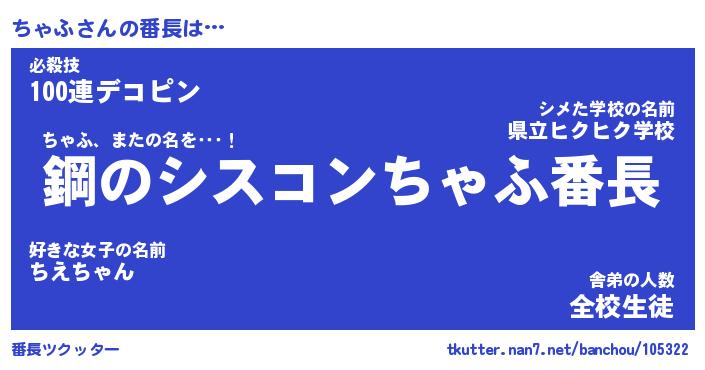 | 肩書あだ名 | 『ちゃふ御曹司』『ちゃふ国家主席』 |