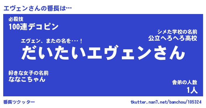 | 欧米人風あだ名 | 『マイケルエヴェン』『ウサインエヴェン』 |