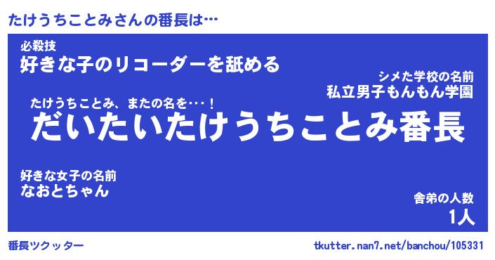 | ヘコむあだ名 | 『たけにー』『なまこ酢』『たけを』 |