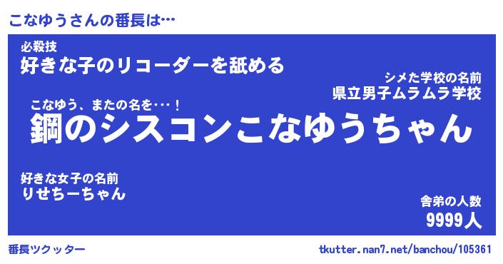 | 意味不明あだ名 | 『ペロリンこなゆう』『永久保存こなゆう』 |