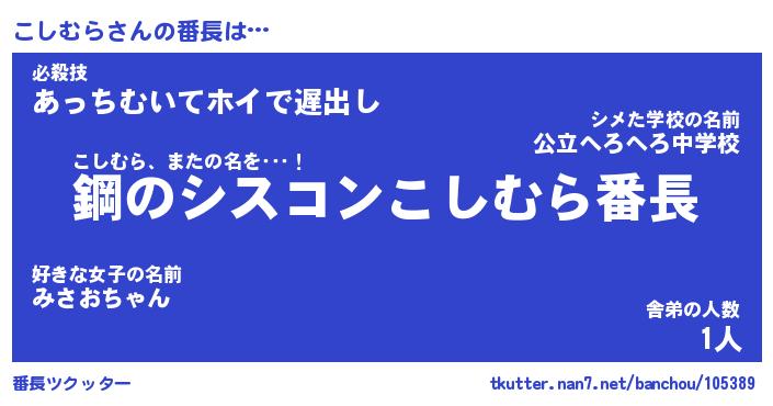 | 伝説のあだ名 | 『封印されし竜騎士こしむら』 |
