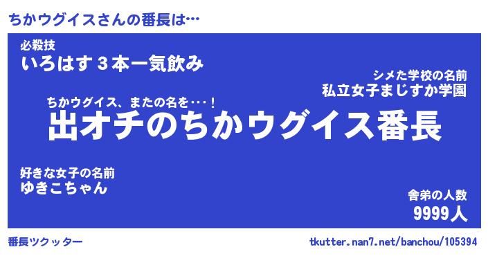| 伝説のあだ名 | 『伝説のスナイパーちかウグイス』 |