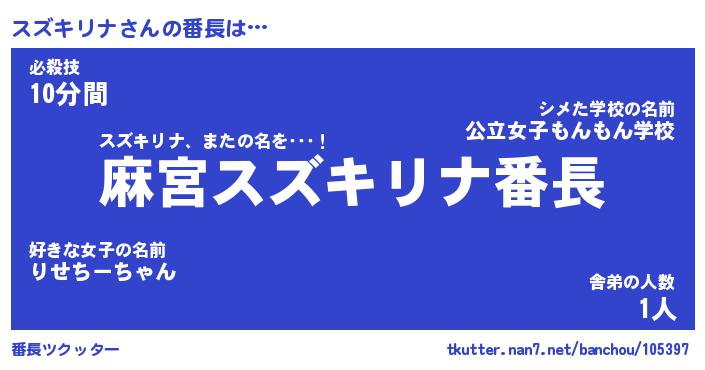 | ヒーロー風カッコイイあだ名 | 『スーパースズキリナ』『黄金騎士スズ』 |