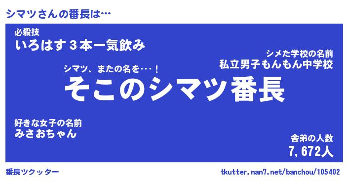 | ヒーロー風カッコイイあだ名 | 『スーパーシマツ』『ウルトラシマツマン』 |