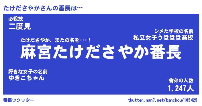 | 2回繰り返すあだ名 | 『たけたけ』『たたけけ』『いじいじ』 |