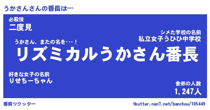 | 意味不明あだ名 | 『ペロリンうかさん』『永久保存うかさん』 |