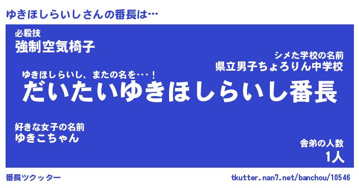 | 男性向けラノベタイトル風あだ名 | 『ゆきほしらいしの憂鬱』 |
