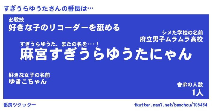 | 意味不明あだ名 | 『ペロリンすぎうらゆうた』 |