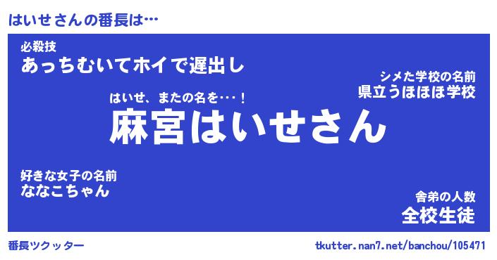 | 意味不明あだ名 | 『ペロリンはいせ』『はいせフォーエバー』 |