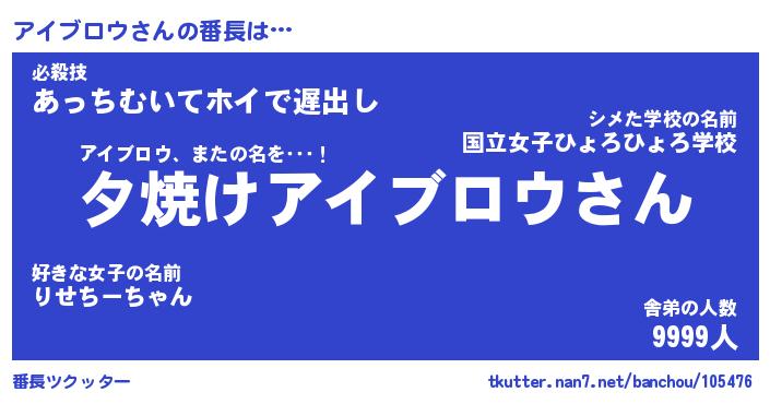 | ヒーロー風カッコイイあだ名 | 『スーパーアイブロウ』『天弓騎士アイ』 |