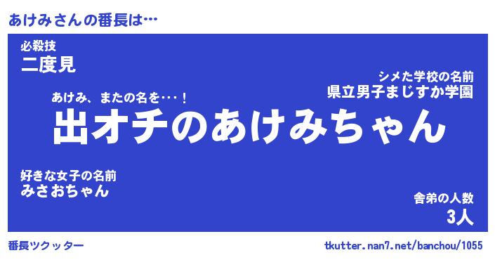 | 意味不明あだ名 | 『ペロリンあけみ』『あけみフォーエバー』 |